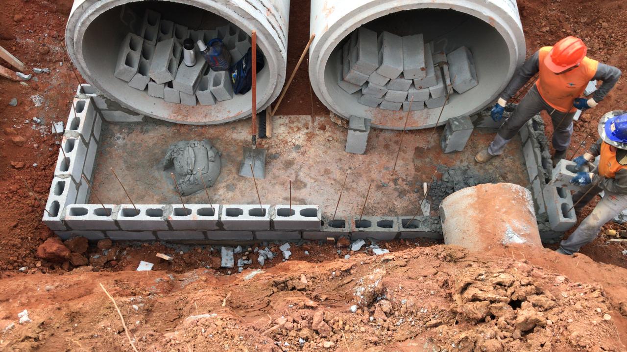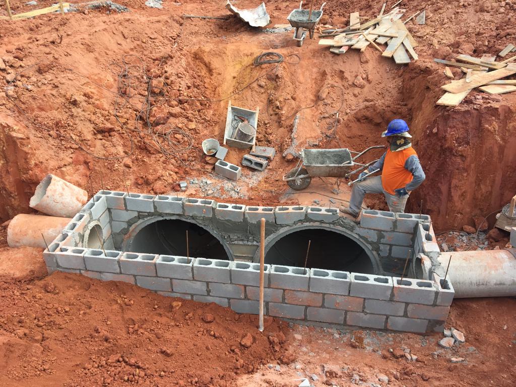 Execução de galerias de águas pluviais, compreendendo escavação, colocação dos tubos de concreto, nivelamento, aterro e compactação.